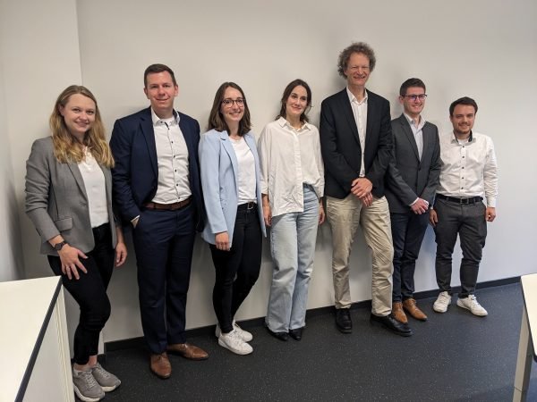 Das Bild zeigt v.l.n.r. Frau Dr. Aurin Gaida-Albers, Herrn Dr. Nico Lempsch, Frau Dr. Anna Waßenhoven, Frau Dr. Lucia Brandt, Herrn Dekan Prof. Dr. Matthias Busse, Herrn Dr. Jan Wüstenfeld und Herrn Dr. Lukas Valentin Hörnig im Rahmen der Übergabe am 08. Mai 2024.