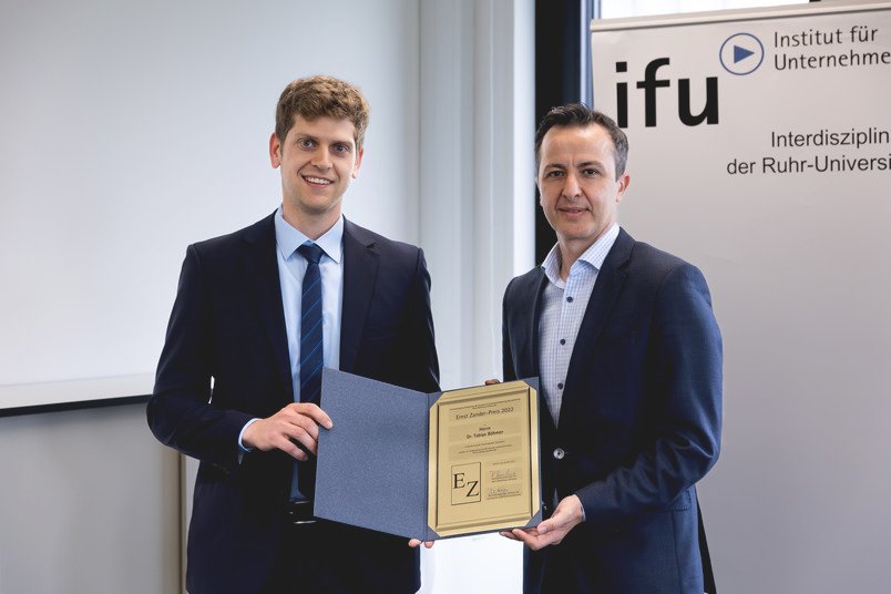 Steuern, Nachhaltigkeit und Unternehmenserfolg stehen im Mittelpunkt der ausgezeichneten Arbeiten. Drei herausragende Doktorarbeiten wurden am 27. August 2021 mit dem diesjährigen Ernst-Zander-Preis ausgezeichnet: Dr. Kristin Kalies befasst sich in ihrer Dissertation mit Fragen der Steuerwirkung und Steuerplanung. Dr. Timo Klünders Arbeit dreht sich um Nachhaltigkeit im Kontext von Industrie 4.0....