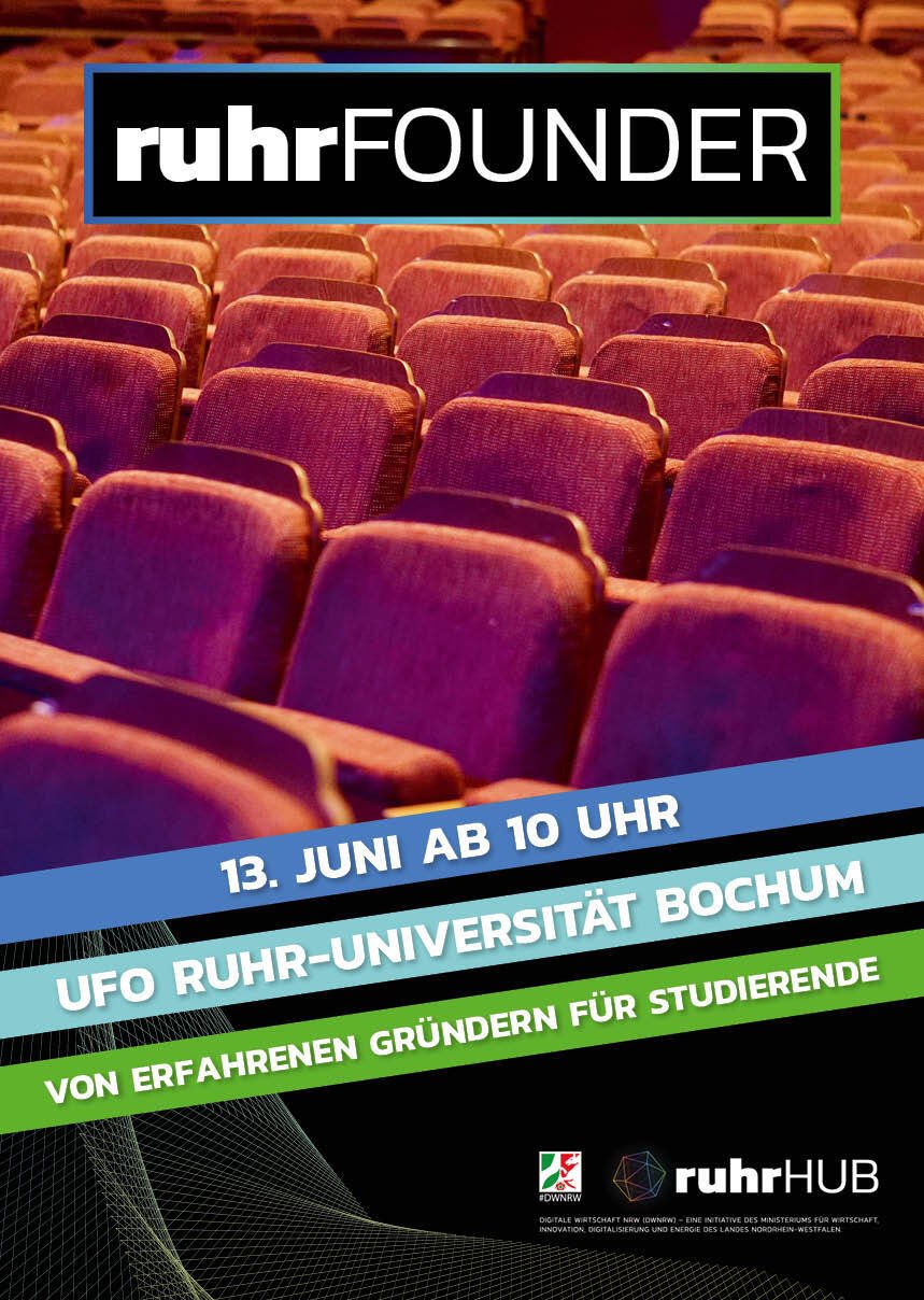 Die Ruhr:HUB GmbH lädt herzlich zum Pre-Event des ruhrSUMMIT – den ruhrFOUNDER – ein. Beim ruhrFOUNDER berichten mehrere Start-up Gründer*innen von ihrem Werdegang vom Studierenden zum „Founder” und erläutern, welche Angebote der Hochschule sie auf diesem Wege begleitet haben. Dabei werden nicht nur Erfolgsstories erzählt, sondern auch die individuellen Hürden der Gründer*innen beleuchtet und wie sie mit diesen lösungsorientiert umgegangen sind. Das Motto lautet: „Mut zum Unternehmertum”, denn an der Universität gibt es viele attraktive Programme für junge Gründer*innen.