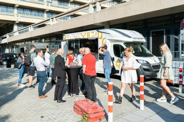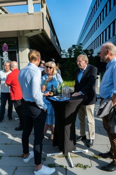 Anschließend ging es vor dem Gebäude GD weiter mit dem informellen Teil der Veranstaltung. Für das leibliche Wohl sorgten Foodtrucks des Akafö und so fand das Sommerfest bei bestem Wetter und anregenden Gesprächen seinen Ausklang.